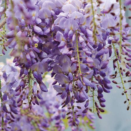 <藤>長い紫色の花を下垂させて咲く藤の花。その上品で優美な美しい姿から世界中で愛されています。藤と春の花のはちみつはイメージにふさわしい高貴な味わいです。