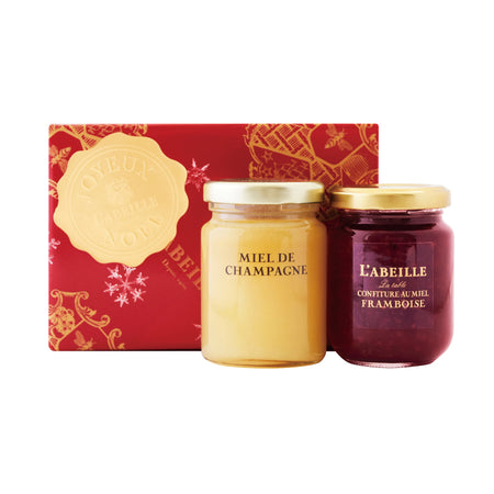 フランス産ミエルシャンパーニュとラズベリーコンフィチュールの詰め合わせ。