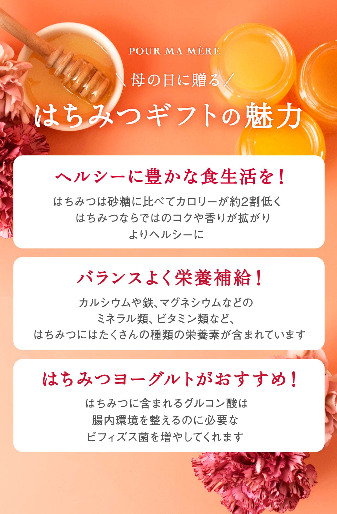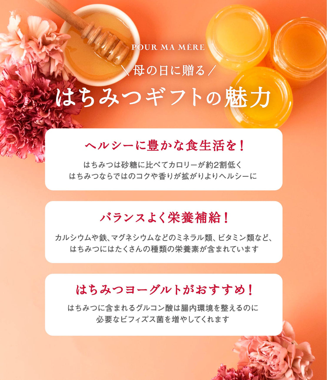 それぞれの花のイメージに合わせて、日頃の感謝を込めて特別なはちみつをお選びいただけます