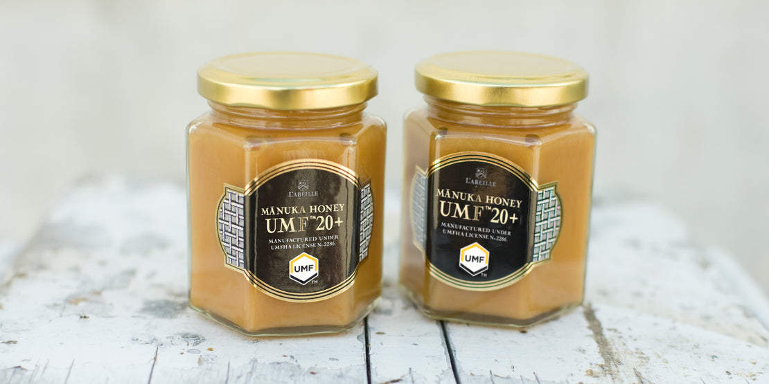 UMF20健康管理への意識が高い方に。数値が高いほど、マヌカはちみつ特有の成分が多く含まれます。250g 21,060 円(税込) 500g 38,448 円(税込)