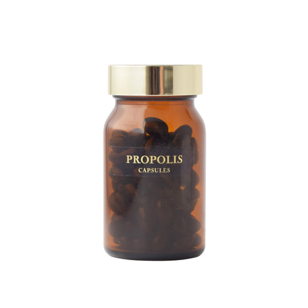 - プロポリスとは、ギリシャ語で「敵の侵入を防ぐ城壁」という意味。みつばちが外敵から巣を守るためにハーブの新芽や樹脂を用いてつくる植物由来成分です。アミノ酸、ミネラル、酵素、ビタミン類、フラボノイドなど健康を維持する為に必要な成分が多く含まれており、負けない体づくりにおすすめな商品です。