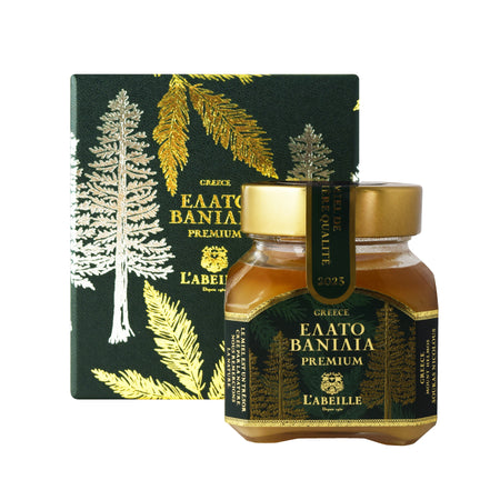 ヘルモス山はギリシャのペロポネソス半島にある標高2355mの山。山全体が美しい景観や生態系を守るため国立公園に指定されています。山の大部分がギリシャモミ(エラト)で覆われている、良質なエラトはちみつの産地の一つです。クリスマスツリーとして知られるギリシャモミは高さ25~35m、幹の直径は最大1mにもなる常緑針葉樹で、標高900m以上の高地に生えます。エラトはちみつの中でも、みつばちが木に残った白い分泌液を吸って作り出した、美しいバニラ色の輝きをもつものだけがエラトバニラと呼ばれます。この輝きは少しの熱でも変色するため、瓶詰の工程で一切加熱や加温をすることができません。乾燥したギリシャの大地が生み出した濃厚なはちみつを、まずはストレートでお楽しみください。
