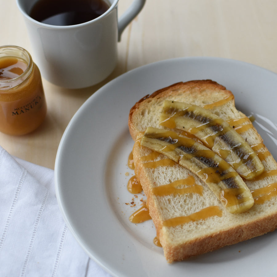 タートーストにマヌカハニーを塗って、バナナをのせ
