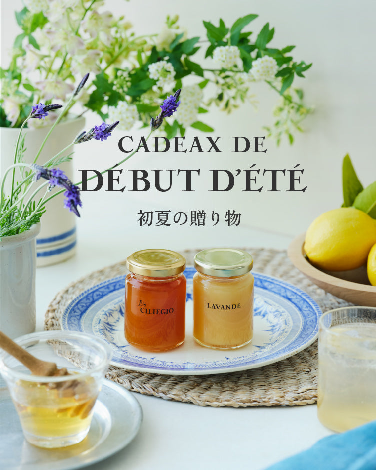 はちみつギフトデュオしっかりした甘みと柔らかい酸味が特徴の「イタリア産さくらんぼのはちみつ」と、レモンを思わせるほのかな酸味とやさしい甘みの「スペイン産レモンのはちみつ」のギフトセットです4,428円(税込) - 初夏の贈り物