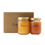 凝縮した甘みとシャーベットのようなフルーティーさがある「イタリア産オレンジのはちみつ」と、ハーブを思わせる清涼感のある香りとキャラメルクリームのようなマイルドで香ばしい味わいの「ニュージーランド マルチフローラルマヌカ」ギフトセットです。