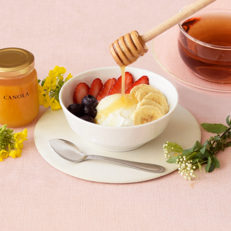 Honey harvested from cute, bright yellow rapeseed flowers. Its rich, full-bodied sweetness goes well with dairy products. Its mild flavor is best paired with yogurt, buttered toast, and milk tea. The flower's meaning is "activeness" and "brightness." It has a mild flavor that can be used in a wide variety of ways. (As this is a natural product, the color and texture may vary depending on the product.)