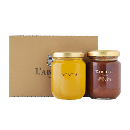 Duo AcaciaThis gift set includes "Honey Miso Dip with Garlic," a spicy all-purpose seasoning made with miso, acacia honey, garlic, and onion, and "Hungarian Acacia Honey," which has a smooth, mild, sweet taste with a subtle acidity and a clean, crisp, and refined flavor.3,672 yen (tax included) - [Summer Gift]