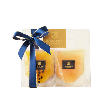 Set of 4 and 8 MIELATIER original summer limited jellies sweetened only with honey. A set of cool jellies perfect for summer, including a fresh-tasting jelly made with "peach x lychee honey," a rich-tasting jelly made with "four kinds of berries x lavender," a mild-tasting jelly made with "kiwi x white clover," and a jelly made with "tropical fruit x leatherwood" honey for a gorgeous combination.Honey jelly (4 pieces) 3,200 yen (tax included/shipping and refrigerated delivery) Honey jelly (8 pieces) 5,600 yen (tax included/shipping and refrigerated delivery)Chilled Honey Sorbet