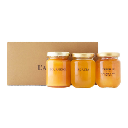 SunflowerAn assortment of French sunflower honey with just the right amount of acidity and creamy, rich sweetness, Bulgarian acacia honey with a subtle floral aroma, and pineapple honey confiture.5,184 yen (tax included) - [Summer Gifts]